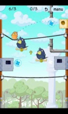 《倦鸟归巢 Lucky Birds City》是一款画面、设定和配乐都相当可爱的休闲小游戏,看着那些天然呆的小鸟,一天的劳累和不愉快都烟消云散。游戏的目标很简单,在夜晚来临之前,让每一只小鸟都回到自己的窝里,不同颜色(体重)的鸟儿有不同的窝,你需要利用电线的反弹,让它们各归其所,游戏到后期会有小鸟被关在笼子里,需要先找到钥匙,还有带电或易断的老旧电线等等。于是越到后面,越需要开动你的脑筋才能达成目标,不要让可爱的小鸟摔地上哦!快来试一试吧!
