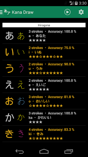 假名塗鴉板可用來幫助練習你的日文寫作及記憶。筆劃先後順序是日文學習非常重要的一環。這個程式可以幫助您在一開始就扎好基礎。