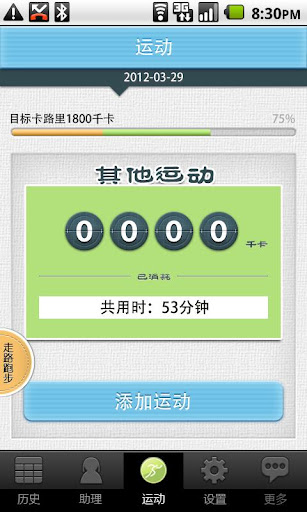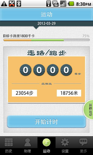 精确:健康减肥4加1利用Android/安卓智能手机内置的3D加速度计和六轴陀螺仪,结合我们研发的专利算法,无论是手持还是放在口袋里,甚至是包里,我们强大的算法都能够自动识别状态并精确记录运动和消耗卡路里。凭借智能手机的强大计算能力和高精度传感器,我们的计算精度远远超过传统的计步器。