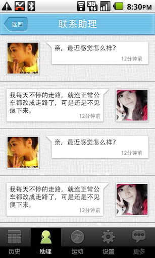 基于微博的SNS+LBS社交网络:一人减肥抗不住,一起运动不孤单。您可以绑定您的新浪微博账户,或是发现周边的锻炼伙伴,还可以将您的运动、饮食等信息分享,和朋友相互督促,共同进步。让更多的朋友见证您的健身减肥历程。