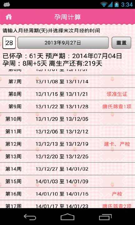 孕周计算器:选择末次月经的时间,就能详细列出每周宝宝发育成长的情况,还能提醒检查事宜。