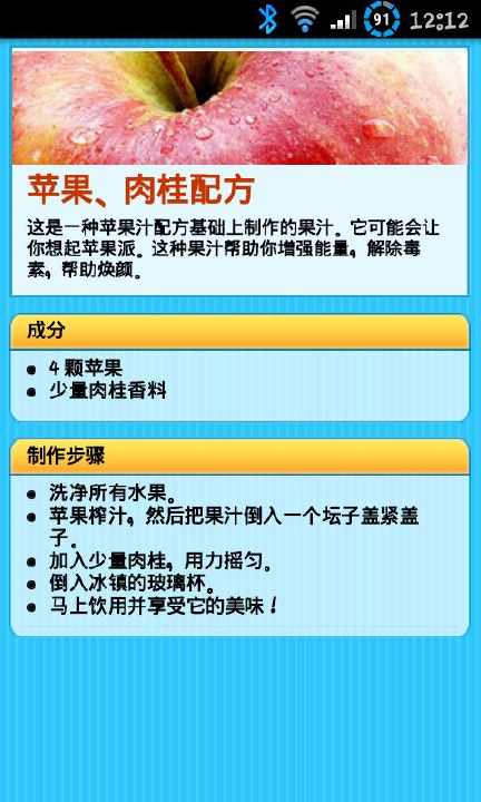 - 其他该应用软件为美味营养的果汁提供50多种制作秘方含简单的步骤和清晰的成分列表