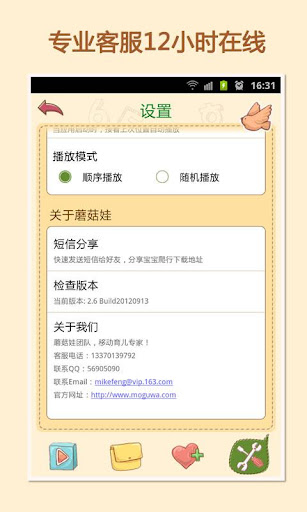 儿歌大串烧由蘑菇娃-移动育儿专家制作,7*12小时在线客服提供服务。蘑菇娃团队的目标是让育儿变简单,让宝宝更聪明快乐!更多应用请访问http://www.moguwa.com.