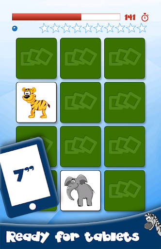 是成人和孩子的最佳游戏。简单而有趣的动物图案。训练孩子的记忆力,并帮他们集中注意力。翻开相同图案的卡片,然后在最短时间内完成每个级别。