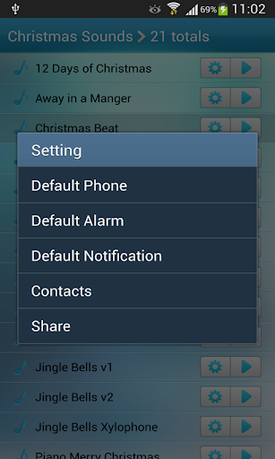 包括54種鈴聲:可怕的聲音,尖叫的聲音,短信鈴聲,體育口哨,舊的3D聲音,野貓聲音,流行的鈴聲,狼的聲音,槍鈴聲, 3D聲音,動物的叫聲,商務,鐘和鐘聲,數字,異國情調,滑稽可愛,搞笑語錄,拉丁,搞笑早晨,懷舊電話,流行,可怕,音效,電子混音,警鐘及警報系統,警報聲音,惱人的聲音,鼓掌聲,最佳古典音樂,最佳鈴聲,鳥叫聲,炸彈鈴聲,打嗝的聲音,汽車的聲音,貓的聲音,雞叫聲,基督教音樂,聖誕聲音,公雞塗鴉鬥,蟋蟀的聲音,狗的聲音,爆炸效果,放屁的聲音機,鈴聲,搞笑鈴聲,搞笑短信鈴聲,萬聖節,鈴聲,恐怖與科幻,馬叫聲,伊斯蘭鈴聲,笑聲音,摩托車,天籟,舊手機鈴聲...