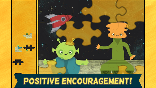 拼圖包括可愛的外星人,有趣的動感太空船,星球和星系!拼圖完成後場景就會復活,火箭飛起,飛外星人駕駛著飛碟,宇航員探索宇宙,以及更多!