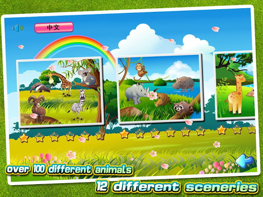 這是一款針對2-12歲的兒童設計的動物認知拼圖遊戲, 它包含哺乳動物、鳥類、昆蟲、海洋魚多個分類, 每種動物有3種語言發音:英語, 中文, 日文,近100種不同的動物, 12個不同的場景,孩子們可以在玩拼圖遊戲的過程中認識這些動物, 聽到它們的叫聲, 看到它們的卡通及真實形象, 幫助您的寶寶通過視覺、聽覺、觸覺全方位感知這個世界.