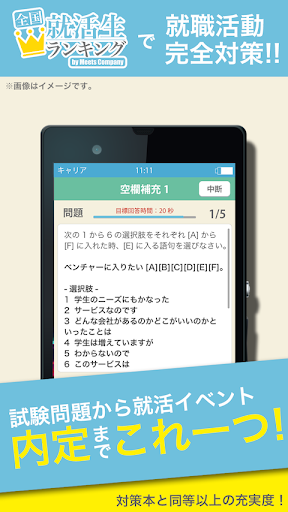 「全国就活生ランキング by MeetsCompany」は、限られた時間のなかで就職試験対策ができる就活アプリです。面接の待ち時間や電車での移動時間など隙間時間に試験対策を進めるのに最適です。