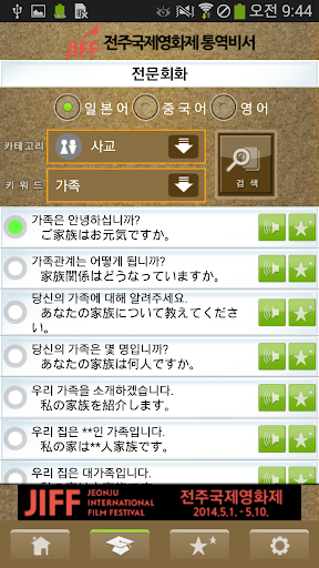 2.内置日语,英语,汉语的3400句“专业会话文”。专业会话文按照场景分为18个分类,使用者使用起来更加方便易用。利用这3400句多国语会话文,可自如地运用100万个会话文。
