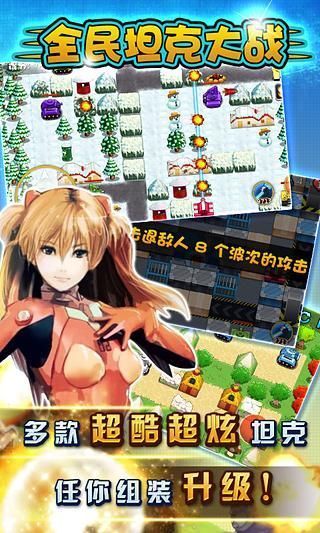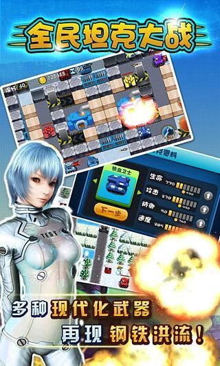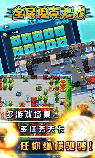 《全民坦克大战》是一款经典坦克对战射击类游戏,类似小时候玩的经典街机《坦克1990》,只要把战场上所有敌方的坦克全部消灭就能进入下一关。游戏共设4个游戏场景共60个关卡,,多个游戏场景任你体验不同环境的战法!游戏操作简单流畅,更有强大的坦克升级系统和武器强化系统,任你自由组装升级。强大的火炮、激光炮、空中支援,打得敌人抱头鼠窜!《全民坦克大战》----又一款男人手机必备的游戏,你值得拥有!