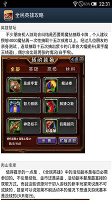 全民英雄游戏攻略是一款专门为全民英雄设计的攻略,该攻略包含了全民英雄的新手攻略、各种玩法介绍、快速升级介绍、高分技快、速成长方法巧、快速升级技巧、全民英雄卡牌介绍、英雄卡牌分析攻略、力智敏进化攻略等等教程,让你玩游戏过程中少走弯路,直接秒杀你的好手,可以介绍不少人民币哟,还不赶快下载。