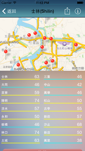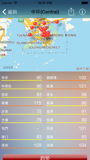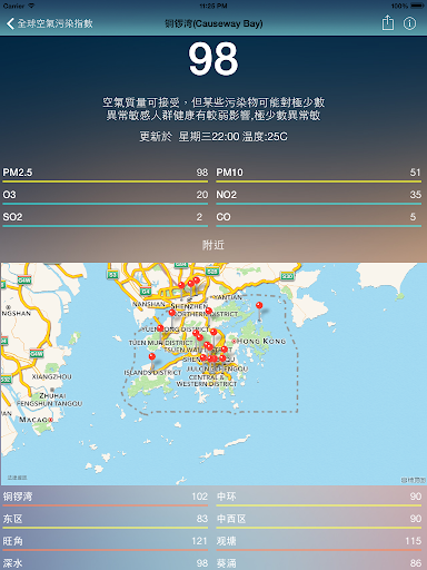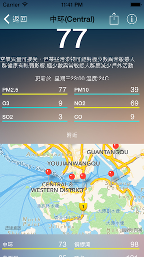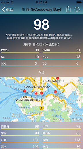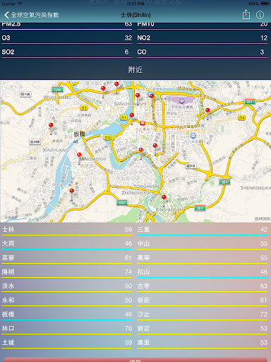 * 地圖模式,全國空氣質量狀況盡收眼底.