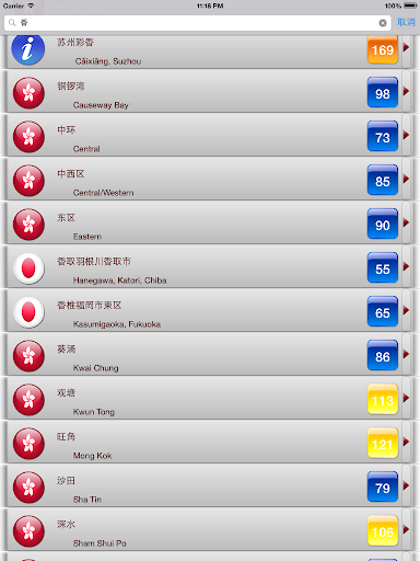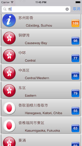 * 支持全國500多個城市,2700多個監測點的PM 2.5數據,更有香港,台灣,澳門眾多城市監測點數據,如北京一地就提供了包括朝陽奧體中心,前門東大街,海淀萬柳等20+個監測點數據