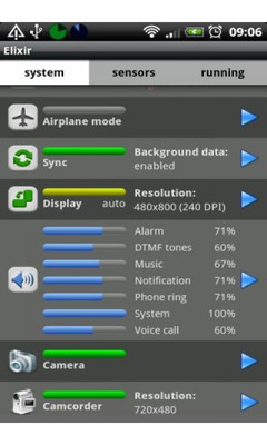 Elixir是一款Android平台上的全面系统信息的监控插件,能够在桌面上显示电池、cpu、内存、内部和sd卡存储、分辨率、wifi、移动网络、gps、蓝牙、传感器等基本信息。可展示的系统信息基本全面了,一个桌面最多可以容纳