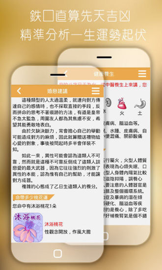 最好的八字测算应用!最专业的命理测算,想要知道自己的未来怎么发展么?想要知道什么样的人才适合自己么?想知道自己什么时候才有出头之日么?一直认为自己很了解自己,是否真的知道自己优点和缺点呢赶快来测试一下。精准分析如何找准你的事业方向,教你如何改善身体健康,您的爱情是天生一对还是欢喜冤家,揭开您的全部秘密,尽在八字排盘。