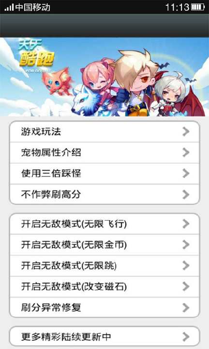 八门神器天天酷跑外挂修改攻略是一款非常好用的辅助工具,省流量,无插件,绝对是一款绿色软件。内容包括《天天酷跑》最及时资讯动态和官方活动,最详尽数据资料和最贴心的新手指南,是玩家在玩游戏时的必备工具助手。