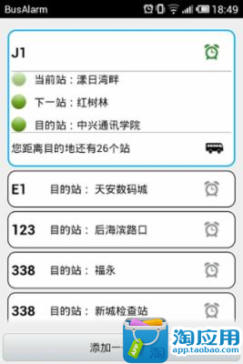 公交闹钟[v1.8] 让忙碌的您不再为错过站点而懊恼!BusAlarm提供准确易用的公交站点定位服务及到站提醒服务,让您不再因为瞌睡或者坐车玩微博而错过终点!