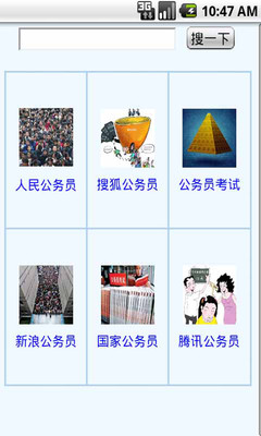 通过手机快速浏览全国各地2013年国家公务员考试最新资讯软件。内容包括:人民网公务员考试最新资讯、新浪公务员考试最新资讯、腾讯公务员考试最新资讯、搜狐公务员考试最新资讯、国家公务员考试最新资讯、公务员网考试最新资讯等信息,具体内容:公考资讯,每日话题,每月时政,考试公告,考试政策,公文公报,重要通知,招考通知,历年真题,行测资料,申论资料,常识资料,面试资料等。
