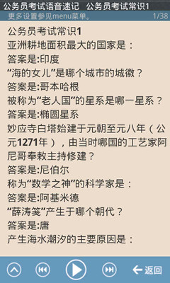 公务员考试常识,采用语音播报,迅速牢记!支持TXT文本朗读,断点续传,本地搜索,书签,记忆等功能,您可以在各种场合下使用该软件,比如候车,坐车,跑步等不方便用眼睛看的情况下都可以使用该软件,轻松记忆,帮助您尽快的捧起金饭碗!