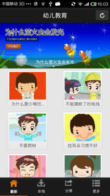 六一儿童网专为android系统定制开发的幼儿教育,通过动画视频的表现方式,帮助儿童扩展内容阅读,增加知识面。小朋友在观看视频的同时还有积累生活阅历。