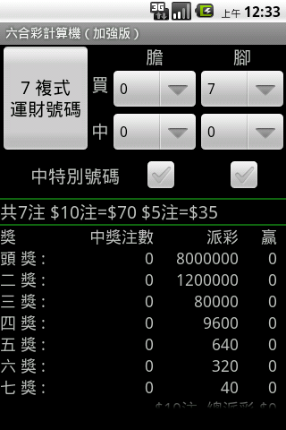 計算香港六合彩 (Mark Six) 所有複式和膽胣的投注數量,金額,獎項數量及獎金金額。亦提供隨機單式,複式和膽胣運財號碼。買六合彩前參巧本程式的注數及金額就更有預算了。