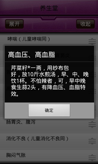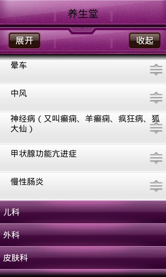 养生,就是指通过各种方法颐养生命、增强体质、预防疾病,从而达到延年益寿的一种医事活动所谓生,就是生命、生存、生长之意;所谓养,即保养、调养、补养之意本款软件以传统中医理论为指导,为您收录了养生必不可少的一些知识以及众多养生秘方,希望对您和家人的健康有所帮助