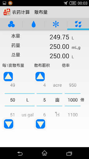 根据每亩的喷撒量、喷撒面积和倍率,算出水量和农药量。
