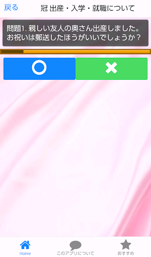 本アプリは、冠婚葬祭のシーンに合わせたクイズ式で作られています。