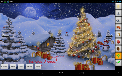 溫和的降雪量,雪球飛行,當你觸摸屏幕,輕輕搖曳的樹木和閃爍的燈光。這種平靜的場景,在寧靜的黃昏黎明今年的聖誕節動態壁紙。還可以查看神聖的夜晚與月亮和星星和日出細膩,色彩艷麗的雪球,大雪,更在這個充滿版本。謝謝你的考慮聖誕節動態壁紙Pro的多美麗的景色和豐富的選擇自己親手創建的聖誕場景。