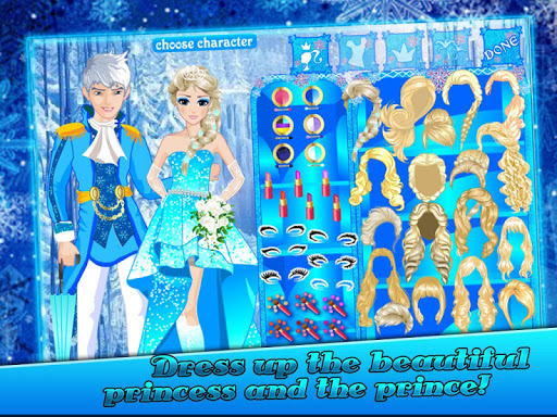 今天是一个非常特别的日子,杰克王子准备向安娜公主求婚,为她们挑选一个美丽梦幻的地方,当然还有一束鲜花! 安娜公主和杰克王子都非常开心,当然不忘精心打扮自己,挑选最漂亮的礼服,水晶鞋,细心涂上眼影、唇膏、睫毛、腮红,上百种组合你可以随意组合,礼服、鞋子、手套、发饰等等…