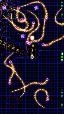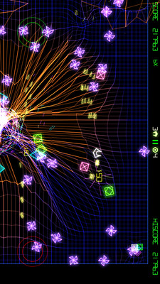 几何战争 2(GridWars 2)因为其绚烂的画面和惊险刺激的玩法在iOS平台倍受好评,此次终于成功上架Android平台。游戏最初被移植到XBOX,玩家进入游戏采用熟悉的摇杆操作,左边将一如既往的控制移动而右边则是射击的方向操控,默认为自动射击,需要玩家不停射击从四面八方来的敌人,敌人因为种类不同所以特性也不尽一样,只有掌握了这些特性并且利用这些特性才能更好的给予敌人以致命打击。