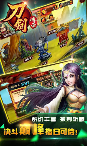 2014下半年超大作 超越刀塔传奇武侠Q版3D动作手游——【刀剑传奇】炫酷进击!掌中微操,你所见过最可爱的萌武侠,群侠云集,再现武林奇迹。可视化动作,华丽特效的武林神技,群侠角力,表情栩栩如生,即时战斗爽翻天,Q版武侠收集爽翻天。超强阵容完美配合,让你感受武侠世界的魅力,来【刀剑传奇】带你一统江湖。