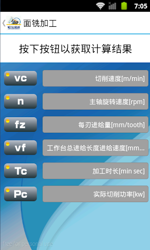 计算时只需要将数值输入,即可自动计算出主轴旋转速度及切削速度等。