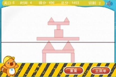 划线切木头,巧拆大城堡。你将运用最基本的物理力学去切开木头拆除各种形状的城堡…一共18关,来挑战你的物理力学和技巧吧。 适合:3岁以上,特别考验物理力学