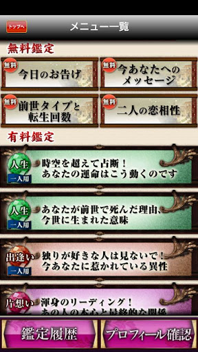 鑑定メニューは「完全無料占い」と超細密な運命がわかる「本格鑑定」をご用意。