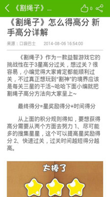 《割绳子攻略》客户端,是由讯游提供,专门为喜爱手游的用户提供文字、图片、视频攻略以及资料库的软件。每天都会及时更新,让您掌控最新的游戏资料与游戏攻略,让用户更轻松、愉快的体验游戏的乐趣。 如果有什么问题和建议可以反馈给我们,我们会努力做的更好!