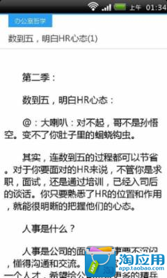 有关于职场真话的书,在这里,与所有想褪去“幼稚”外衣的读者共勉。换下职业生涯中“幼儿“的开裆裤,一起成长成熟。帮你指点大方向的道理书,而是帮你寻找出职场中的“小细节”对症下药的职场“实用工具书”。