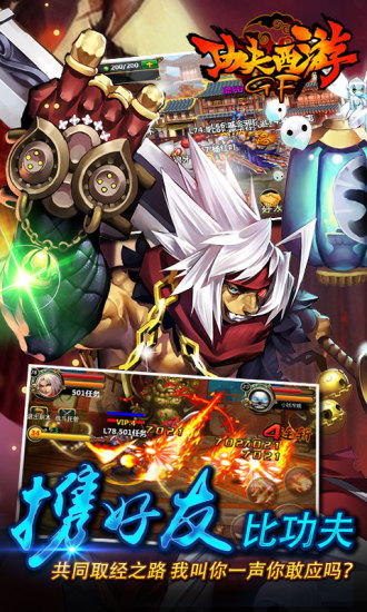 《功夫西游》是一款以西游记为世界观基础,架空而成的横版动作网页游戏。您将扮演一个跟随唐僧等人一路西行,并助其师徒降妖除魔的角色。整个游戏的剧情主线接连不断,辅以精彩的对白,能够展现一个个完整有趣的故事。