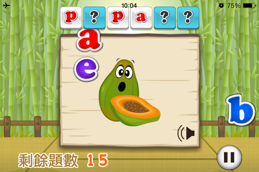 找出單字中缺少的英文字母,並輕鬆滑動手指,快速將英文字母切開。