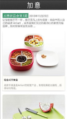 2.加意新品会为您精心挑选创意新品,限量新品让你抢鲜一步,体验全新的 品质生活方式!