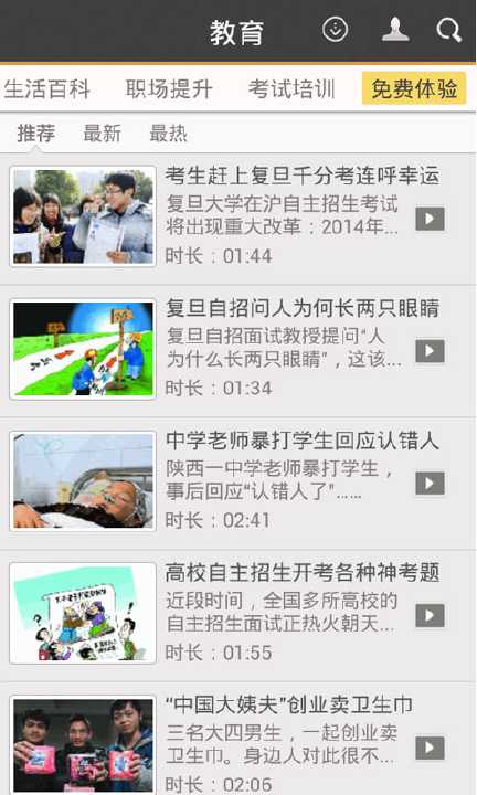 爱V课堂,是一款能够实现在线视频点播的教育学习平台,最新最热门的教育资讯生活百科、最精华的职场培训、最顶尖的世界名校公开课、最科学的早教课程为您一网打尽。全方位在线娱乐与知识获取相结合,零广告悦享升级。