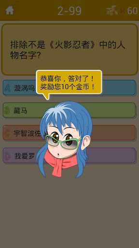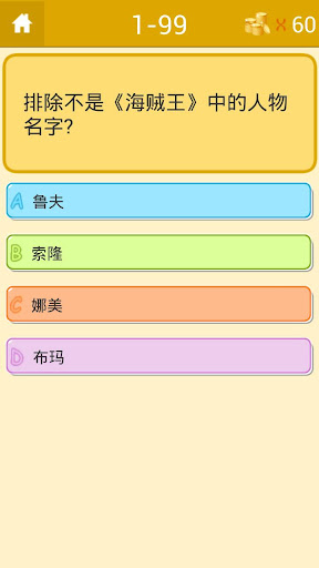 此應用我們設置99個動漫問題,猜對壹個可以進入下壹下關,是不是很簡單,妳的知識就在這裏發揮,快開始吧!