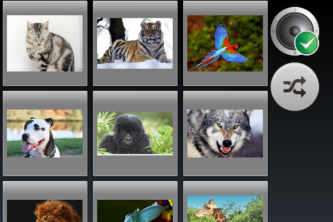 我公司開發的應用程序,特別是對兒童,動物選擇的圖像作為幻燈片播放的聲音的動物,允許它通過,屏幕被觸摸。