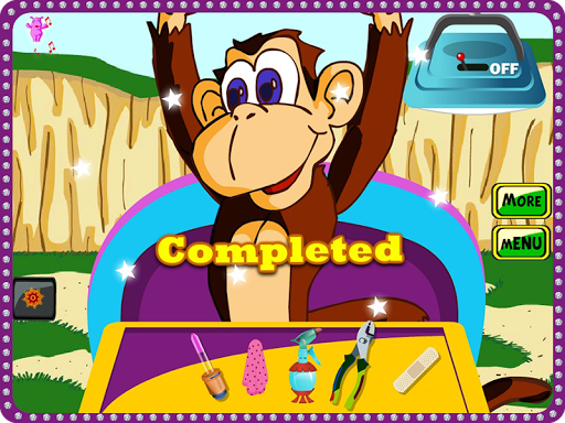 你有四個寵物一定要慎重。獅子,猴子,狗,大象需要你的技能,以幫助他們渡過醫師。使用帶我們從獸醫所接受的護理醫療器械,試圖以最快的速度,因為他們不吃虧癒合。你需要用鉗子取出針,用噴霧器在消毒液,消毒紙巾的使用,我們會關心消毒水和我們後申請一個新的補丁。確保你做的一切你的能力範圍內,以加速傷口的癒合。這個遊戲有四個級別後,你完成了第一級,你就可以在動物遊戲等水平發揮