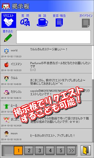 また、アプリ内には掲示板があり自分の好きな曲を作成リクエストする事も可能です。