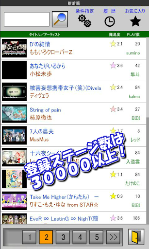 JASRACから楽曲利用許諾を受けているため、オリコンランキングに登場する話題の曲はもちろん、初音ミクや東方などの楽曲も安心してご利用頂けます。アップロードされたステージは運営スタッフによりタイミングのズレや配置を審査される為、Androidユーザは質の高い楽しいステージのみにアクセスできます。