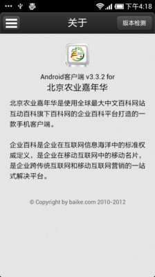 北京农业嘉年华是使用全球最大中文百科网站互动百科旗下百科网的企业百科平台打造的一款手机客户端。