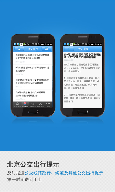 4,及时的公交出行提示,对线路、道路绕行、施工进行预警,发布新线路信息。