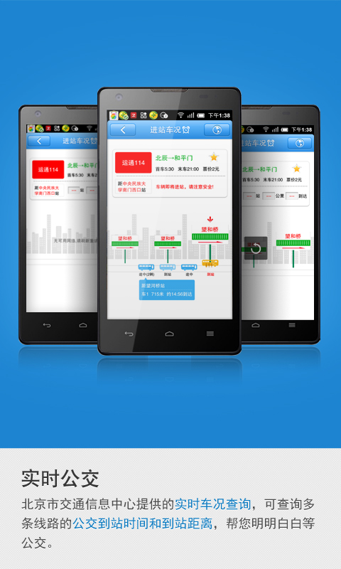 北京实时公交是一款基于智能手机的免费实时公交信息查询软件, 提供多条示范线路的公交车到站距离、到站时间查询服务。让北京市民出行更便捷。