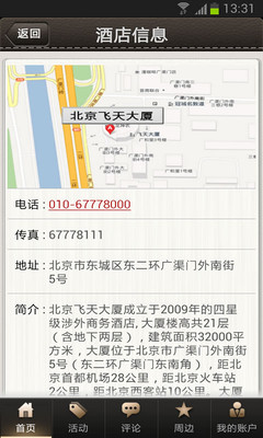 北京飞天大厦详细介绍,酒店房间预订,酒店特色服务介绍,酒店活动的发布,酒店评论,酒店周边景点的介绍,以及地图导航等等。用户可以用此应用直接了解酒店信息,直接预订酒店,享受全网最低价!